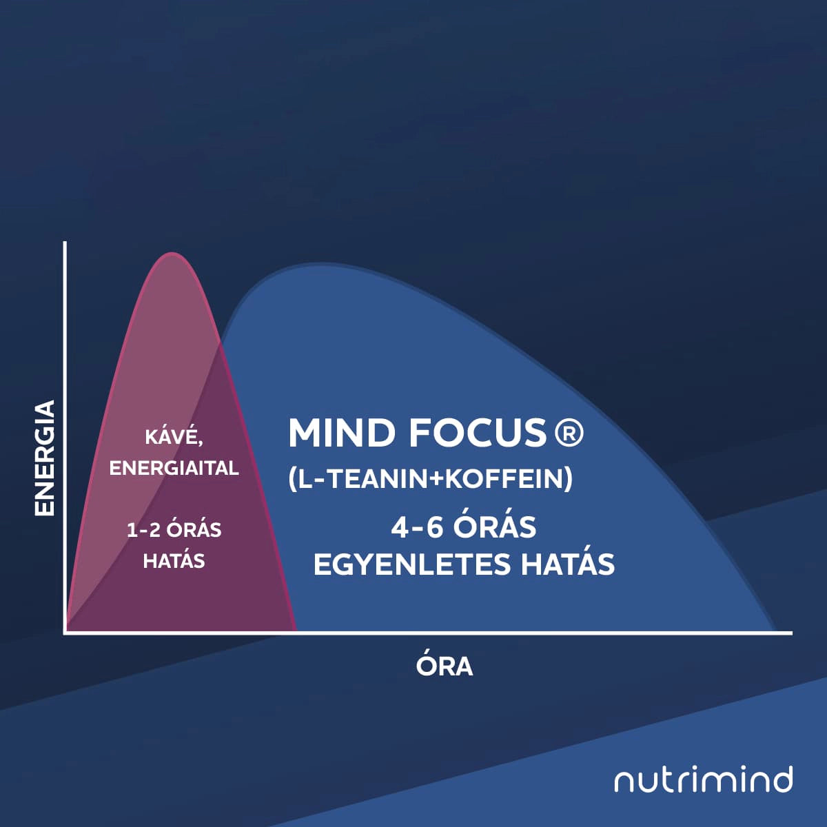 A Nutrimind® Mind Focus® egy azonnali megoldás, 2 természetes hatóanyag tökéletes kombinációja biztosítja, hogy mindig tettre kész legyél, és energikusan, higgadtan érd el a céljaid – bármilyen helyzetben.